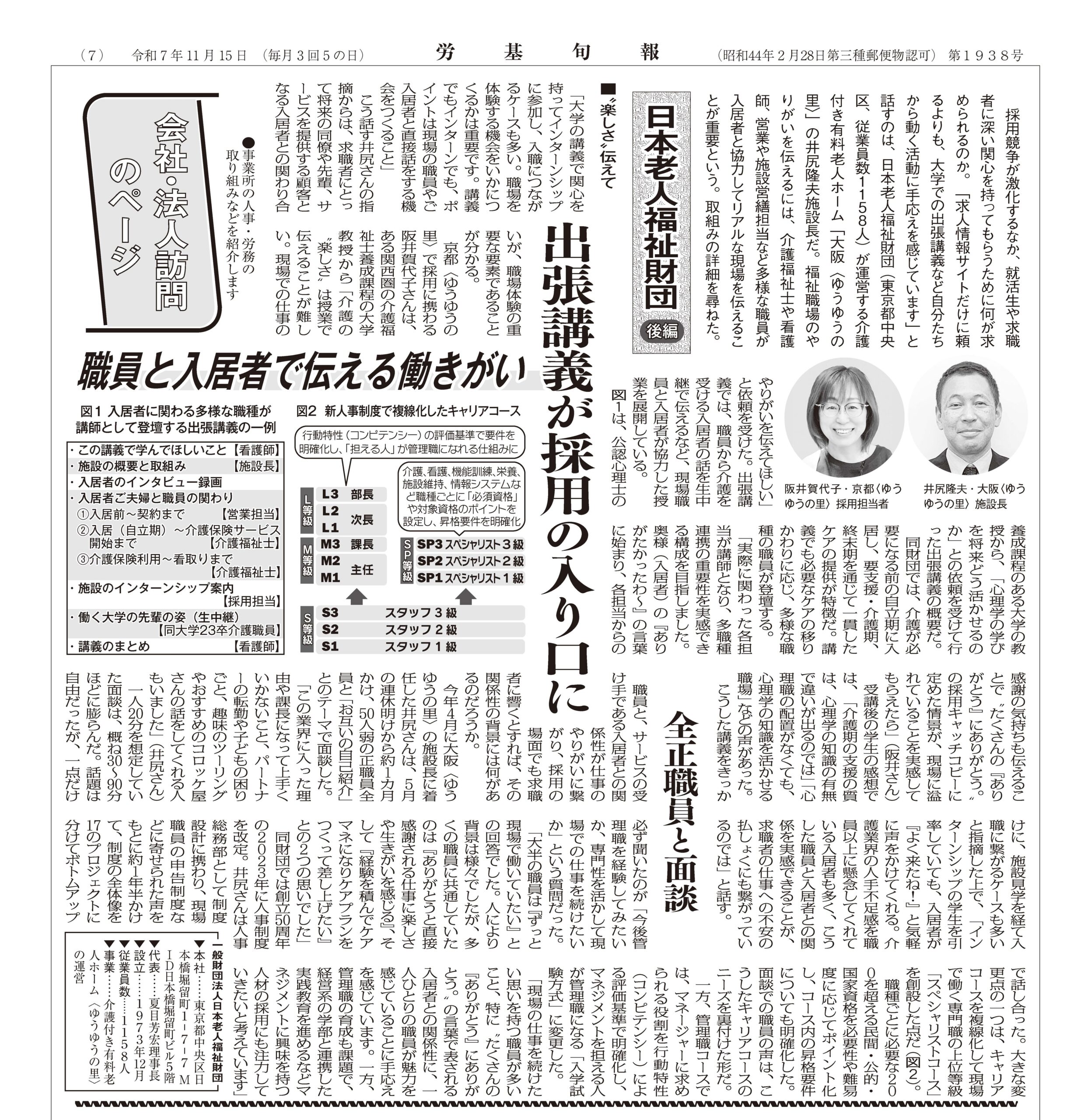 先月に引き続き労基旬報に日本老人福祉財団の人事制度についての記事が掲載されました
